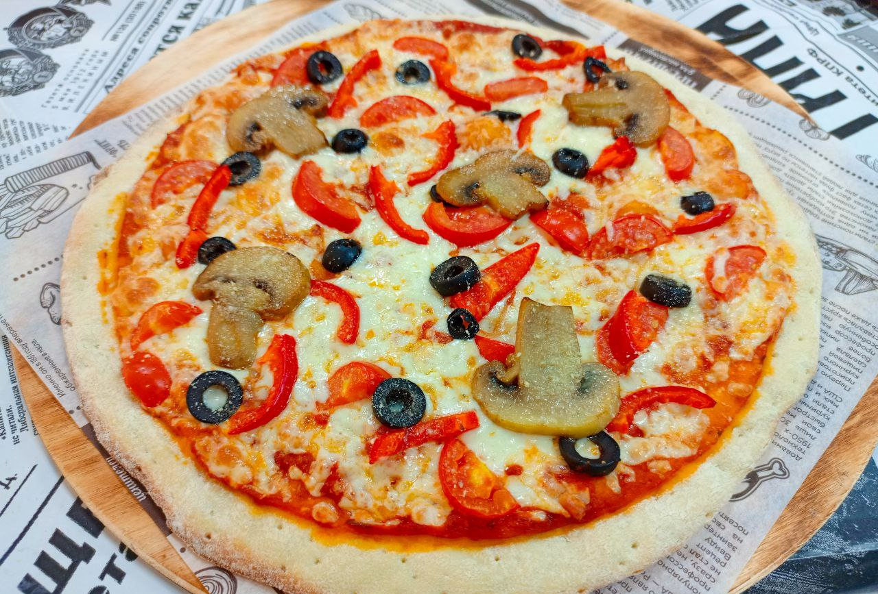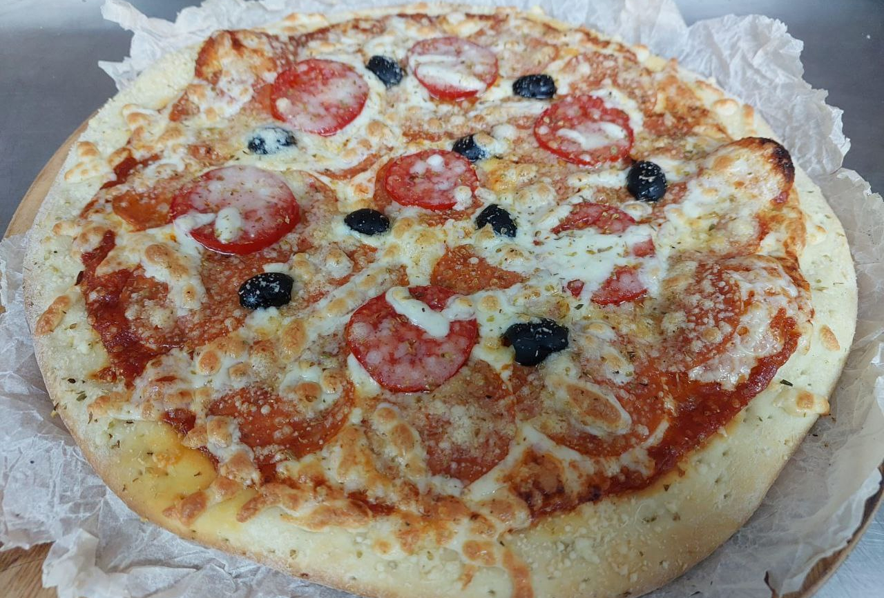 Состав: пепперони, маслины, моцарелла, пармезан, фирменный соус