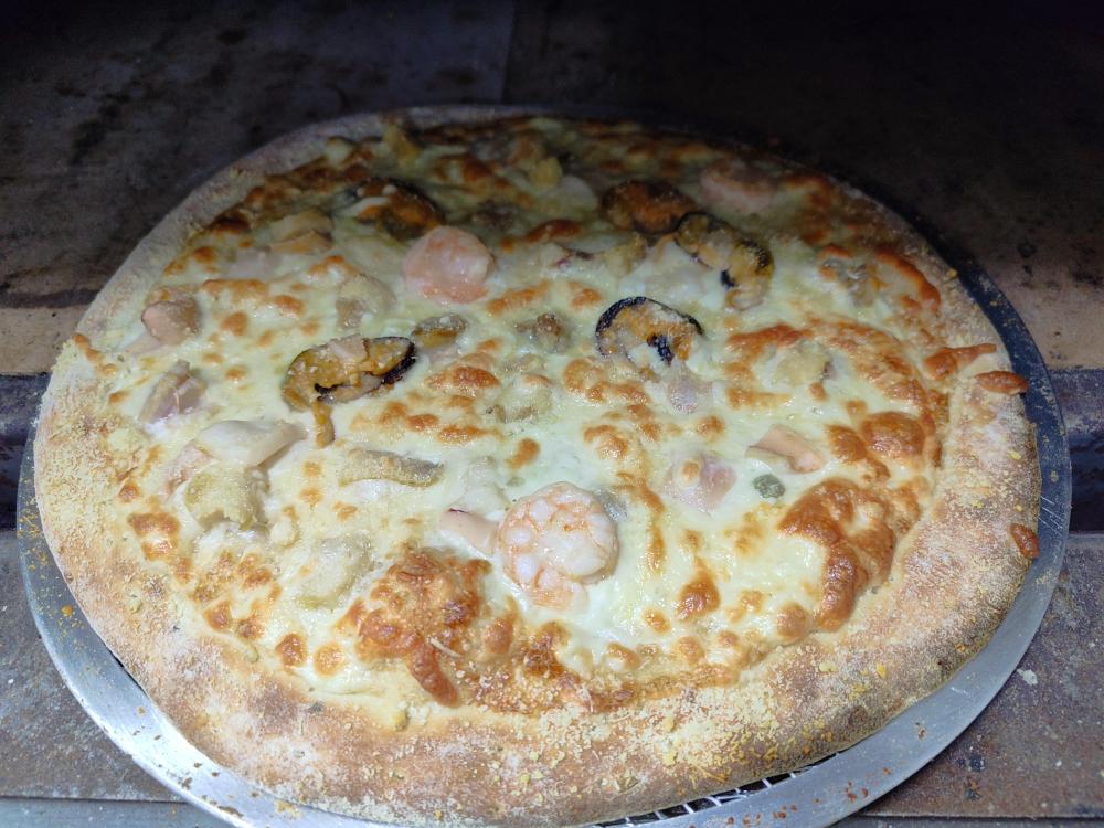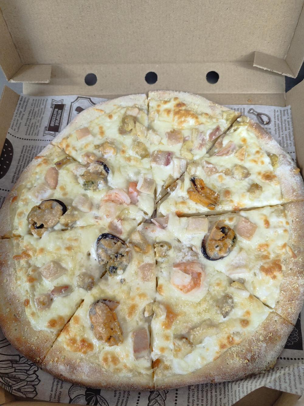Состав: морепродукты, моцарелла, пармезан, фирменный соус