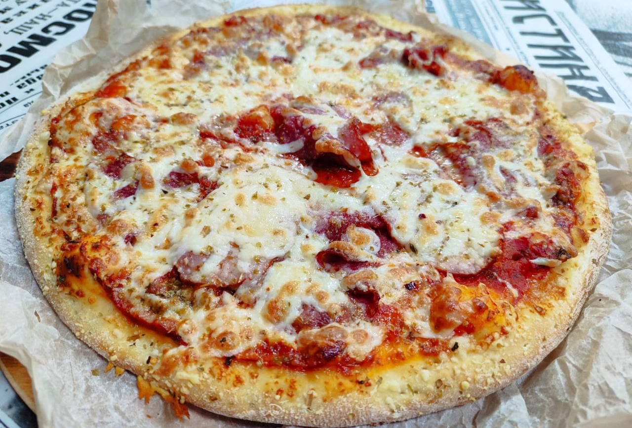 Состав: бекон, моцарелла, пармезан, фирменный соус, орегано