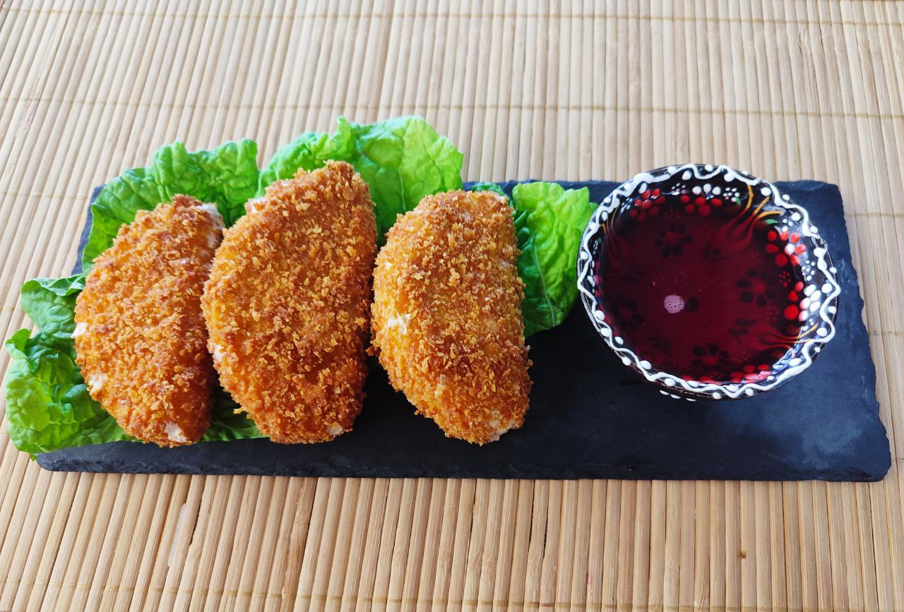 Состав: сыр Моцарелла, панировка, брусничный соус